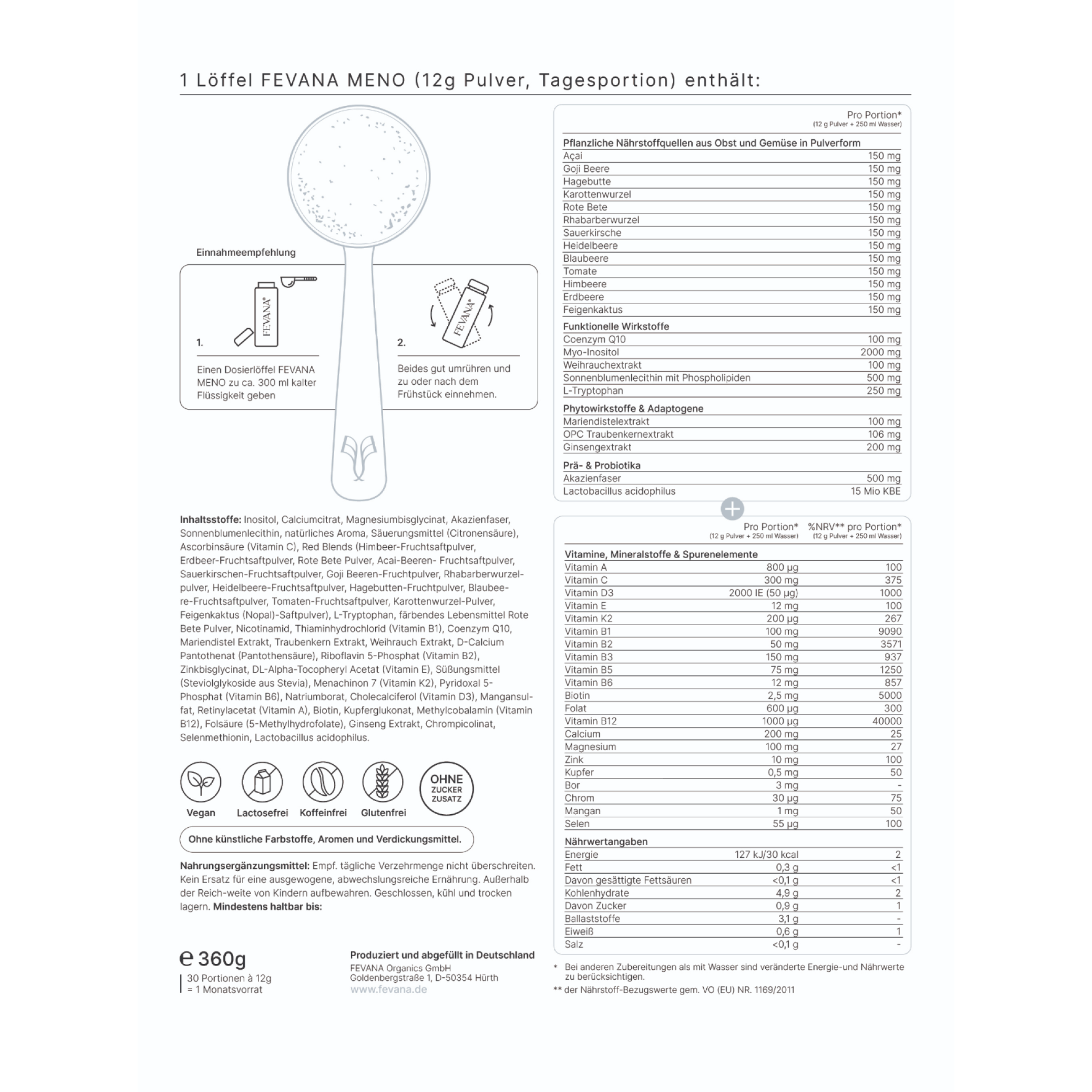 Das alles enthält nur ein Löffel FEVANA Meno: