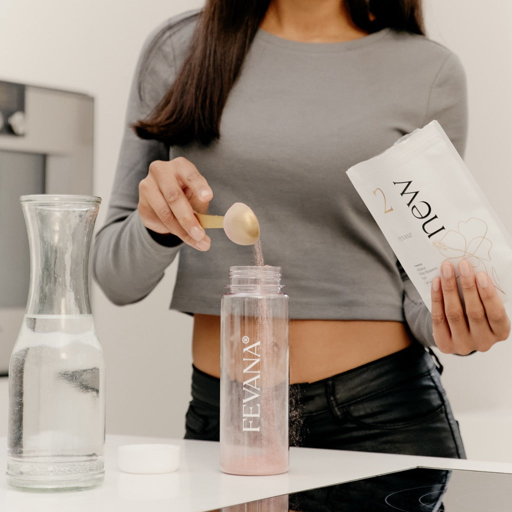 FEVANA kannst du in Wasser oder Smoothies einrühren. Der Geschmack ist dezent fruchtig, ganz ohne Zuckerzusatz oder künstliche Aromen. Viele Kundinnen sagen: „Endlich ein Supplement, das ich gerne trinke!"